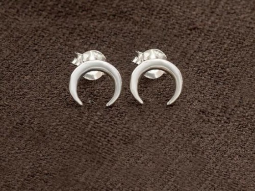 1 pair of 925 Sterling Silver Crescent Moon Stud Earrings 7x8 mm.
