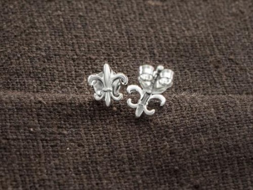 1 pair of 925 Sterling Silver Fleur de lis Stud Earrings 6x7mm. Polished Finish