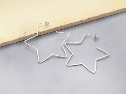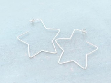 1 pair of 925 Sterling Silver Star Hoop Stud Earrings 40mm.