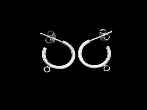 1 pair of 925 Sterling Silver Hoop Stud Earrings Post Findings 2x15mm. with Opened Loop.