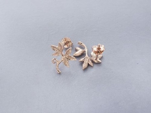 1 Pair of 925 Sterling Silver Rose Gold Vermeil Style Leaf Branch Stud Earrings 12x13.5mm.