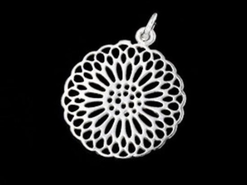 1 of 925 Sterling Silver Filigree Disc Pendant 19mm. Polish Finish