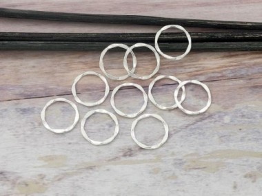 10 of 925 Sterling Silver Hammered Circle Closed Rings, Connectors 11.5mm.
