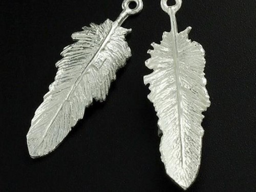 2 of 925 Sterling Silver Feather Pendants 10x32mm.