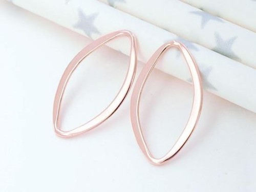 2 of 925 Sterling Silver Rose Gold Vermeil Style Flat Marquise Links, Connectors 12x20 mm. Polish Finished