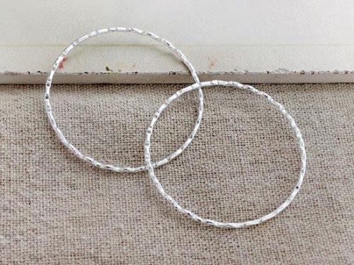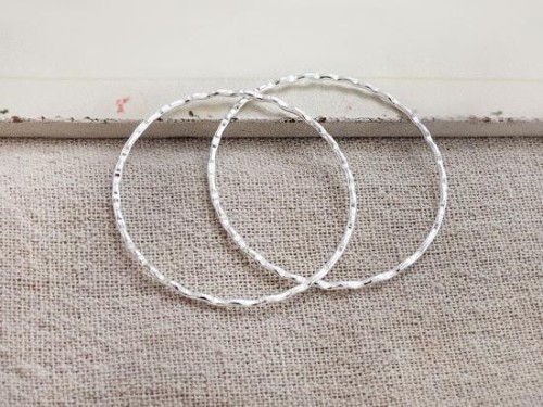 2 of 925 Sterling Silver Hammered Circle Closed Rings, Connectors 40x1.2mm.