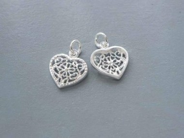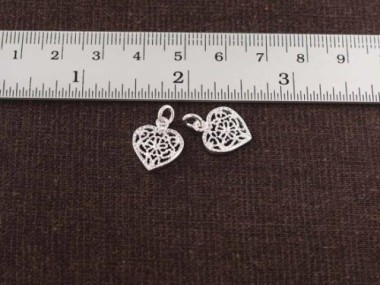 2 of 925 Sterling Silver filigree Heart Pendants 12.5x11mm.