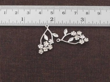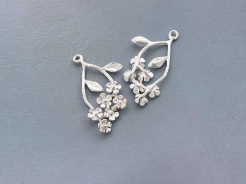 2 of 925 Sterling Silver flower leaf tree branch Pendants 12x20mm.