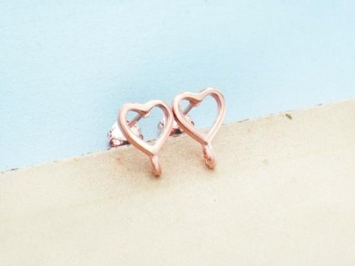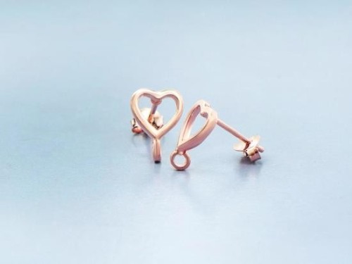 1 Pair of 925 Sterling Silver Rose Gold Vermeil Style Heart Earrings Post Findings. 8.5x9mm